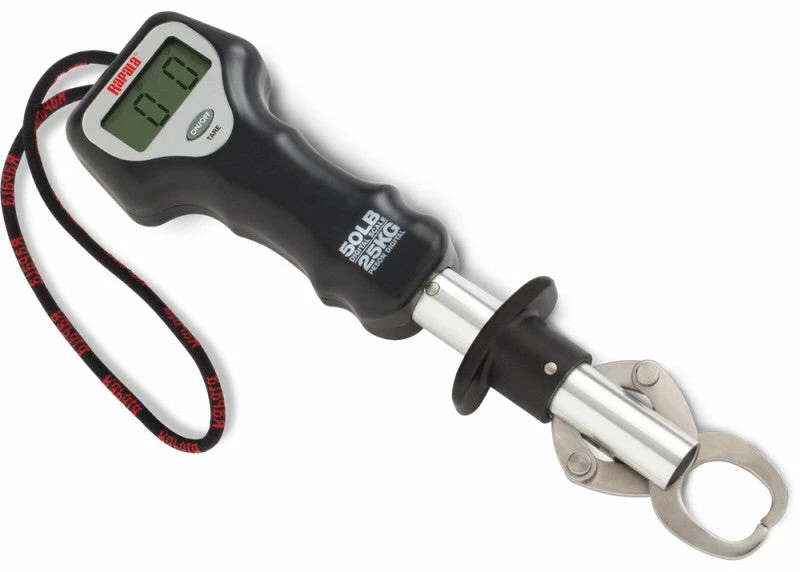This deluxe, 50lb. DIGITAL FISH GRIPPER SCALE model is packed with upgraded features. Start off with rugged high-grade stainless steel construction for unmatchable toughness against fresh and saltwater environments. This digital scale allows measurements in lb./oz., decimal lbs., or kg. while the large easy-to-read display is big enough to see in pictures. Water resistant scale runs 600 hours on 2 AAA batteries, thanks in part to the 2 minute auto shut-off. Wrist lanyard keeps it on board.