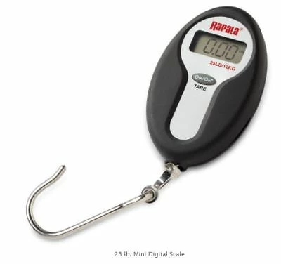 - Depending on the model, the Rapala Mini Digital Fish Scale weighs fish up to 25 or 50 pounds with precision accuracy