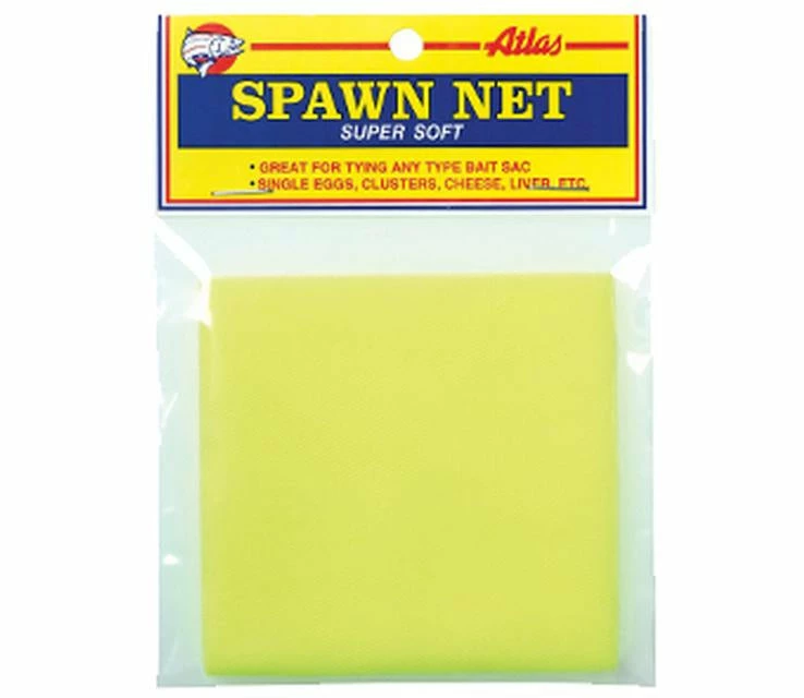 Atlas Spawn Net Squares are a bait sac netting. Perfect for small bait sacs, especially liver or bigger soft/cut bait. Ideal for fast current fishing since they help the bait stay on the hook better. Available in 6 colors, 50 squares per pack.