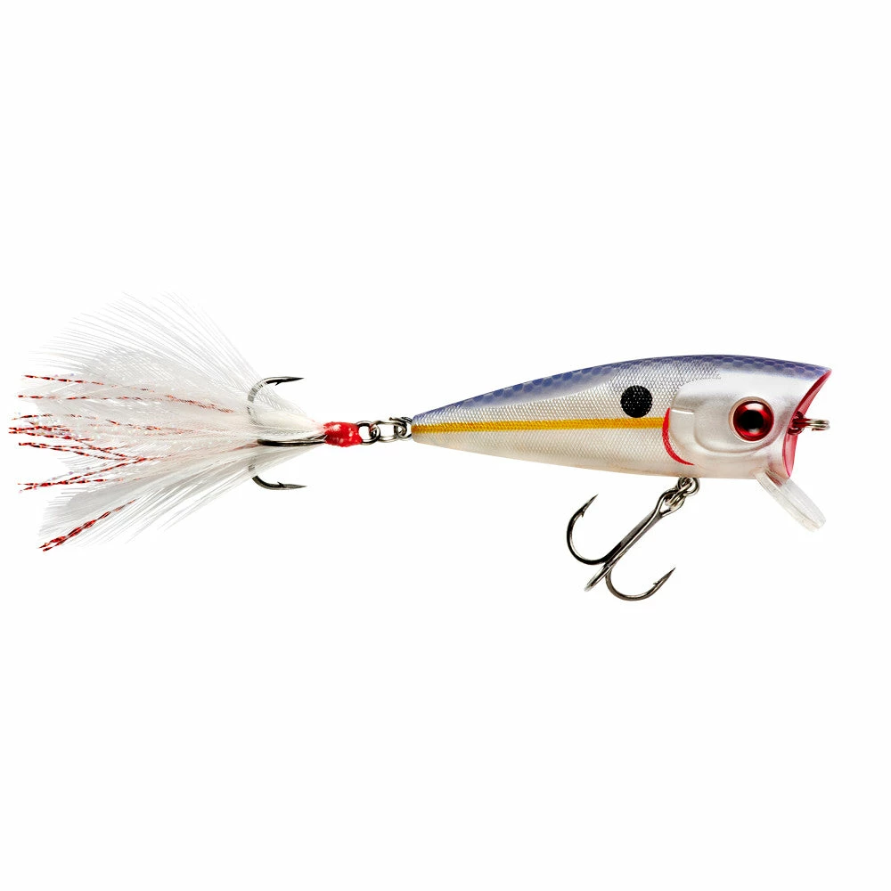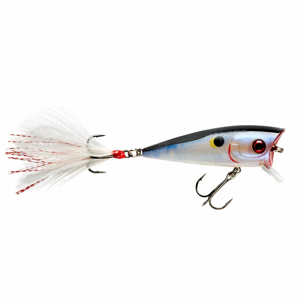 The Booyah Prank is a 2 1/2 inch topwater popper specially designed to function as both a popper and shallow diving crankbait. Its cupped lip and shaved mouth spits and sprays tons of water when you fish it across the surface. Yet, ingeniously, this bait also features a small squarebill lip and a shaved back that allows it to dive up to 2 feet and deflect off of cover like a traditional squarebill. Comes outfitted with a feather-dressed #6 treble hook to make it even more attractive to any bass that dares to cross its path. Available in 8 colors.