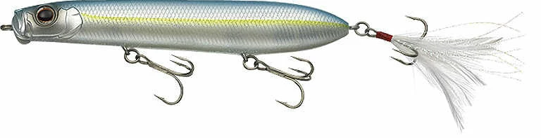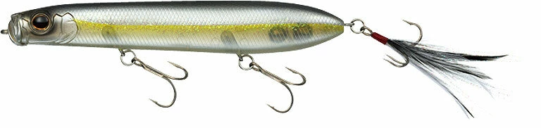 The Evergreen International SB-125 a.k.a. “Shower Blows” is Morizo Shimizu’s bait of choice for searching the surface of the water. Its unique bill produces powerful splatter, spit and bubbles that appeal to fish in a wide area with a single cast. A body designed for air-resistance reduction, and tungsten weights at the very end of its tail guarantee incredible distance even against head winds. Excellent body balance allows it to make quick consecutive turns without jumping out of the water, making it move much like agitated bait fish chased by a bass.The feather hooks attached to the tail take those light bites of a fish unable to break above water into full-on bites, and the resistance created by the feather hooks has the effect of producing more sharpness to the bait’s quick turns. Whether to attract far-away fish with dramatic action, or nervous fish with soft vibrations, Evergreen International’s SB-125 is the one tool that can handle it all, regardless of any change in the day-to-day conditions of the fish.