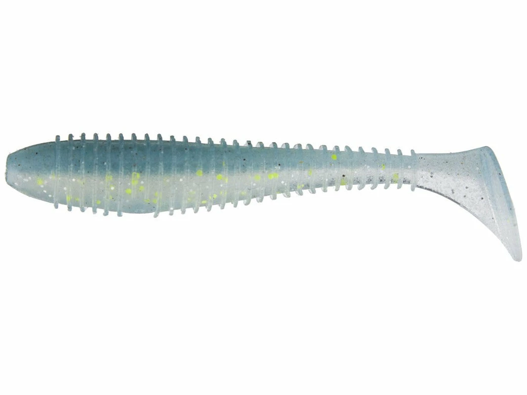 The Keitech Fat Swing Impact 7.8 inch is a large, ribbed, paddle tail swimbait that redefines swimbait performance. Keitech’s revolutionary two-tone injection process uses several different types of salted plastics to achieve perfect balance & action. The most impressive feature of these great swim baits is the ability to maintain a perfect swimming motion at any retrieve speed. The tapered design ringed body distorts the shape to a more natural appearance. The center rigging line provides the perfect position to ensure the bait is rigged correctly. The Fat Swing Impacts are packaged in blister packs to help protect the integrity of the baits.