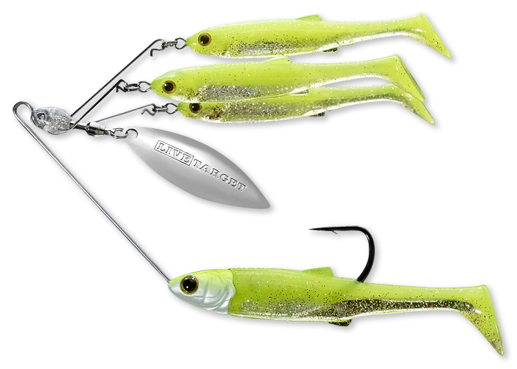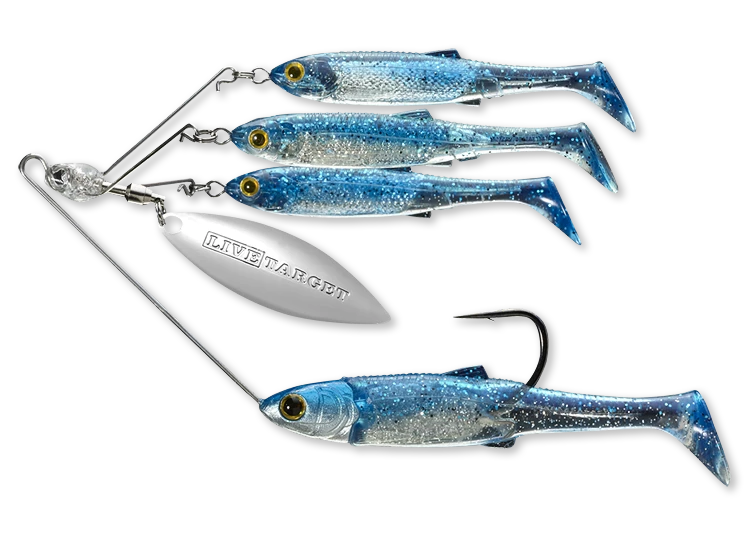 - The LIVETARGET BaitBall Spinner Rig Umbrella Rig combines the anatomically accuracy of realistic baitfish swimbaits, the vibrations of a spinner blade, and the school of fish presentation of an Alabama rig.