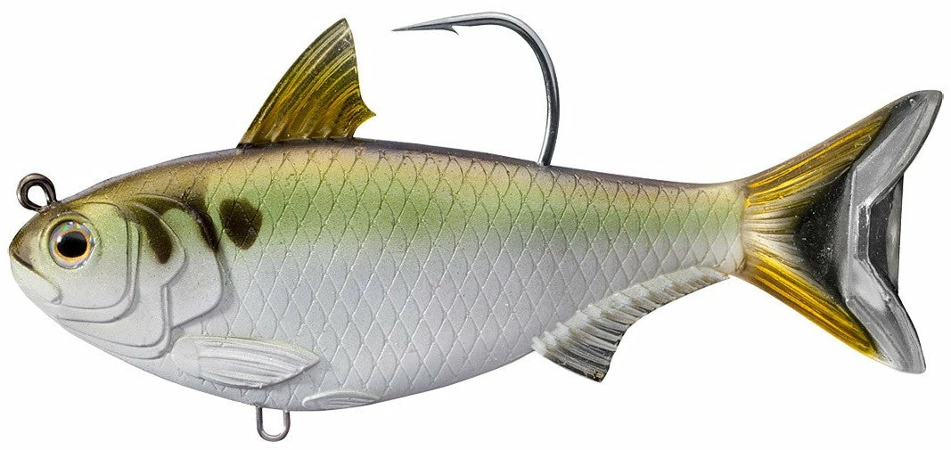 The LIVETARGET Gizzard Shad Swimbait is an ideal match when bass get dialed in to a big shad bite. With a wide and deep body, anglers now have a big profiled swimbait to target shallow to deep ranges. The oscillator generates a moderate wobble action. Available in 3 sizes. Freshwater.