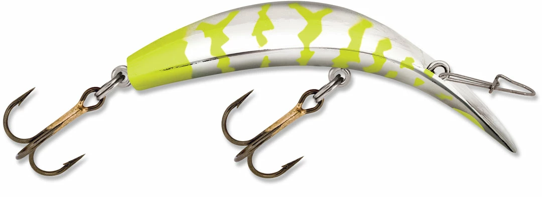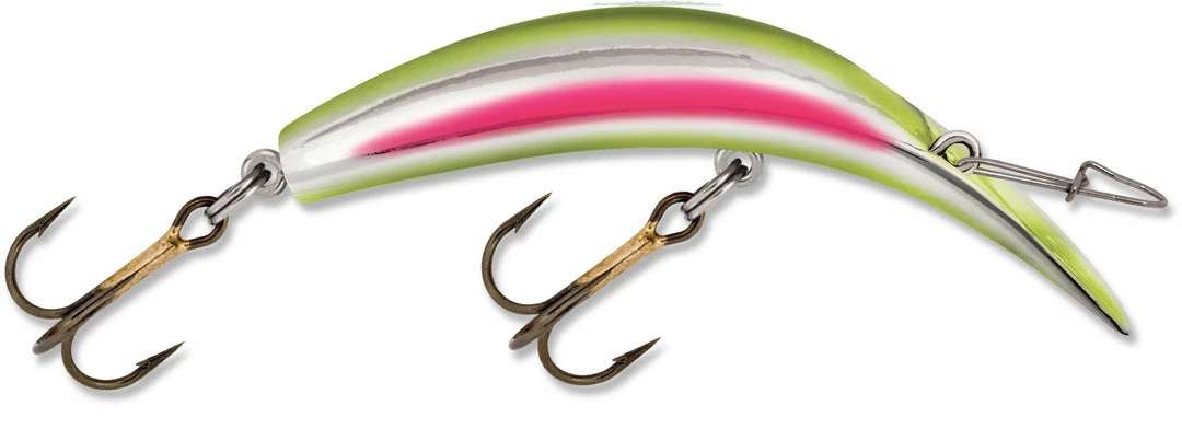 The Luhr-Jensen Kwikfish X-Treme K9X is a 2 3/4 inch strong, durable, full-throttle, wide-action lure that dives up to 10 feet and challenges gamefish both small and large. Great for when you want a deeper diving lure when fishing deep water or fast current without needing a lead weight or diver. For maximum success, pinch the eye on the face of the plug to achieve an even side-to-side action, or pinch the eye in the opposite direction that the lure is favoring, until it tracks straight. Cast or troll, fish it on its own or with cut bait tied to the belly. This lure is available in variety of excellent salmon and steelhead fishing colors and is proven to perform no matter what the conditions are.