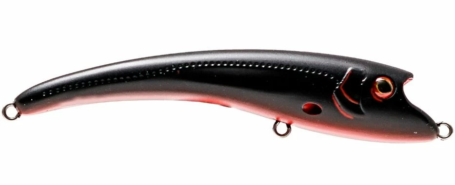 The Nomad Design Maverick 115/140 Floating is one of the most unique designs for a casting lure you will ever use. The Maverick can be worked at least 4 different ways to entice a bite. Essentially a combination of a popper and floating stickbait (aka topwater walker), and is something the lure design team at Nomad worked on for a long time to perfect the ultimate balance and action. The cupped head and air chambers going through to the underside of the body have been designed to force bubbles along the side of the body, where they hug the sides of the lure creating a unique rolling swimming action. It can be worked in a ‘walk the dog’ style, as a swimming stickbait with a wild action, as a popper, or fast across the surface with an erratic action. Depending on conditions, nearly all retrieve styles prove deadly on tarpon, redfish, snook and striper.