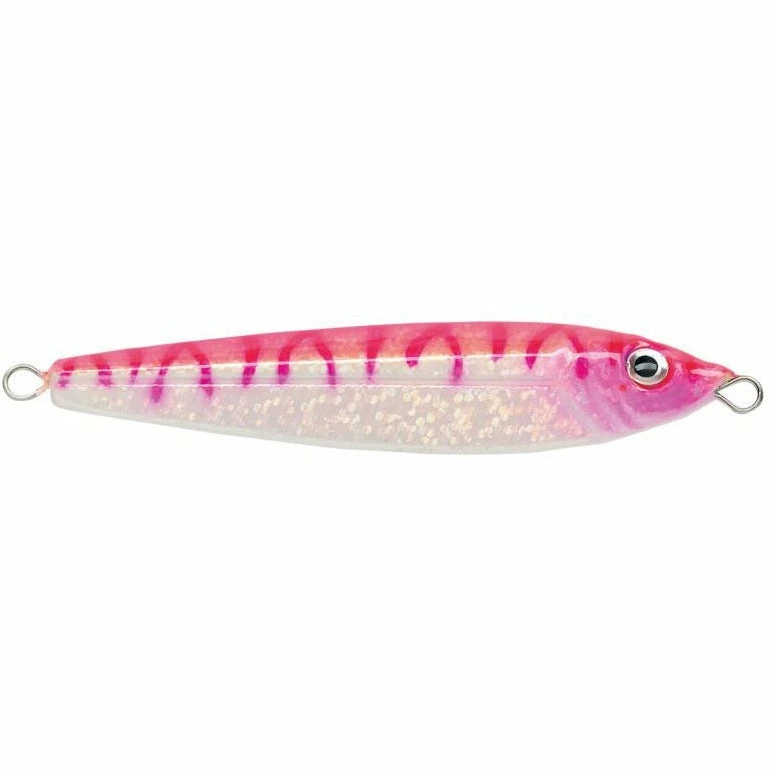 The P-Line Laser Minnow is manufactured with a unique holographic laser tape, creating an amazingly life-like finish. The oblong shape and sharp cuts on the side allow for an erratic action when jigged. This action will trigger strikes from a number of species. The smaller sized Laser Minnows are effective in fresh water for Bass, Trout, and Kokanee; the medium sizes are effective on Lake Trout, Striped Bass and Salmon. While larger sizes were designed for Albacore, Dorado, and any type of bottom fish such as Halibut, Ling Cod or Rockfish.