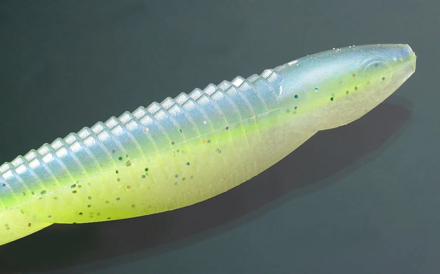 The Reaction Innovations Little Dipper is a 3 1/2 inch soft paddle tail swimbait and an excellent choice for any swimbait fishing enthusiast looking for a finesse approach. It can be used in a number of applications and can be rigged several ways as well, making it highly versatile and amazingly efficient. Its design features the same ribbed body that you would see on a typical Reaction Innovations bait, but it also comes equipped with a slotted belly for easier hook penetration and an oversized paddle tail to move water, make noise, and create some action. Available in packs of 9 with 12 colors to choose from.