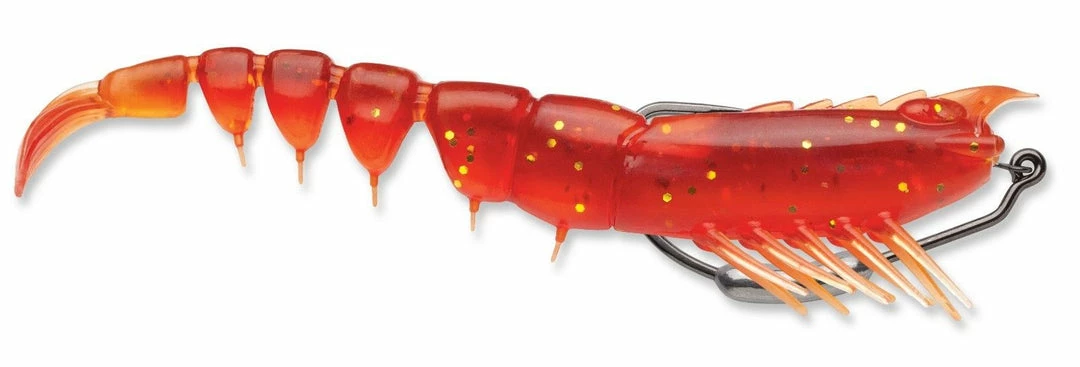 The Storm 360GT Shrimp w/ Hook is a pre-rigged, shrimp-imitating soft plastic swimbait designed to attract hungry saltwater predators with its life-like shrimp features. Specifically, this bait features a segmented body that displays natural looking tail action on both the fall and retrieve. Realistic legs also swim and kick on the fall while the flat bottom design keeps the bait upright when resting on the bottom. It comes pre-rigged with a VMC Coastal Black Hook with Keel Weight and is available in in 2 sizes (3 inch and 4 inch) and 12 colors. Each 360GT Shrimp w/ Hook comes with 1 pre-rigged with hook body 3 extra bodies (1 hook and 4 bodies total).