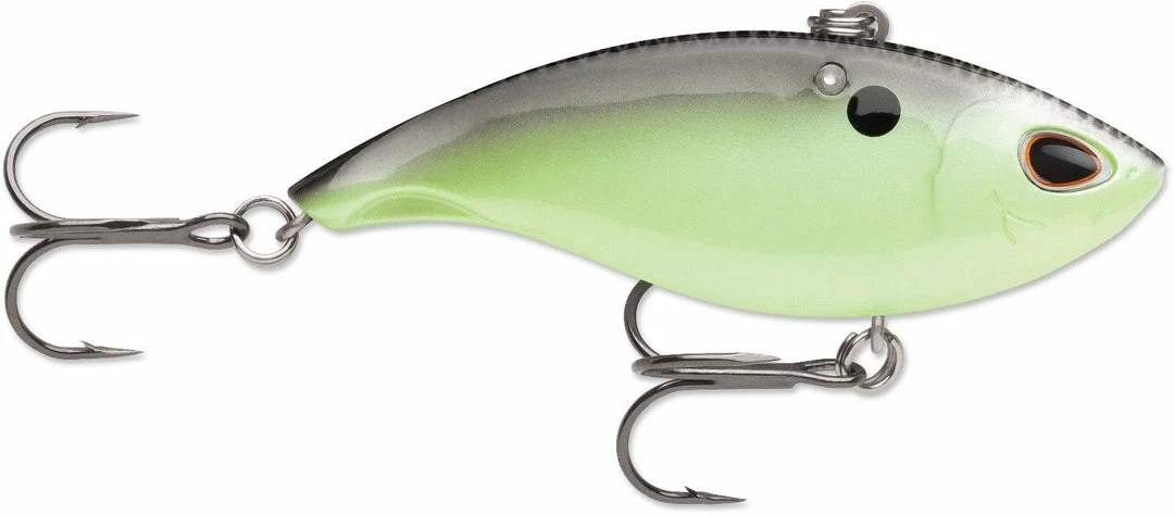 The Storm Arashi Vibe is a 2 3/4 inch, 9/16 ounce lipless crankbait designed for when the bite turns off. You can generate subtle vibration and sound at incredibly slow speeds with this bait using either a steady retrieve or a lift-fall technique. Soft knock rattle provides a single cadence sound that attracts without overpowering. In addition, this lure features a self-tuning line tie with a free-moving design that allows the lure to start action easily and vibrate at slow speeds. Rotated hook hangers also nest the hooks close to the body for improved action, preventing hangups, even with the larger hooks. Available in 14 colors.