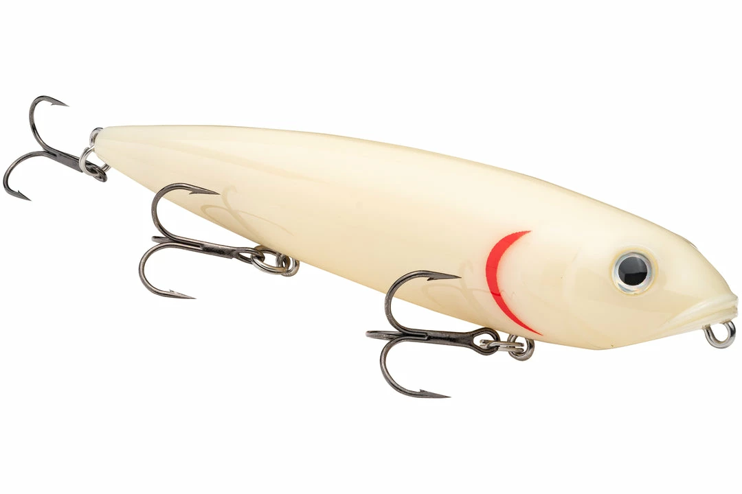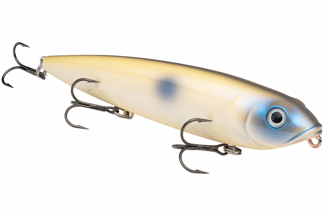The Strike King KVD Mega Dawg Topwater Walker is a 6 inch, 2 ounce topwater walker made to be the premium oversized “walk-the-dog” (aka “Spook-style”) topwater lure. A supersized version of the top-selling Sexy Dawg, it retains its unique, streamlined body design that makes it come to life rhythmically with great side-to-side action walking action with a simple twitch of the rod tip. The large size makes it great for largemouth and stripers that are keyed in on larger forage. To upgrade its attention grabbing, it is fitted with a boisterous rattle chamber. Super-strong treble hooks make sure every strike is a catch. Available in 10 colors.