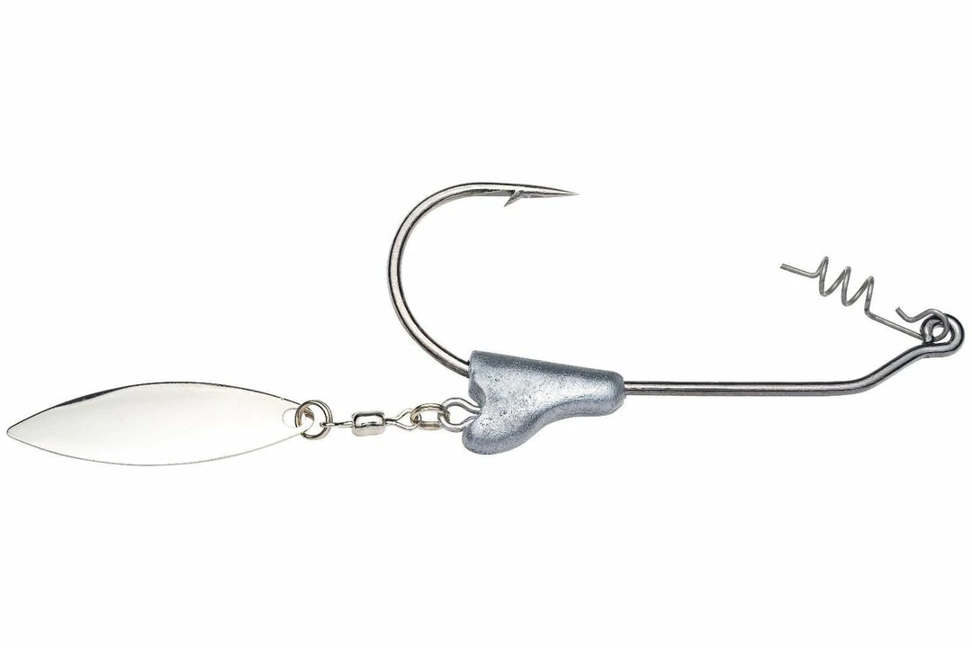 Soft plastic lures will never be the same with the Strike King Tour Grade Belly Blade Bait Terminal Tackle. Connected to a high-grade ball-bearing swivel is Raz-R-Blade Willow blade and a weighted keel-type head, with more flash and less lift. Featuring a premium black nickel needlepoint hook with a stainless steel corkscrew keeper to maintain a perfectly streamlined and weedless presentation, the Strike King Tour Grade Belly Blade Bait is available in 3 weights (1/8, 1/4, or 3/8 oz.) to suit your extra needs when you think soft baits are not enough!