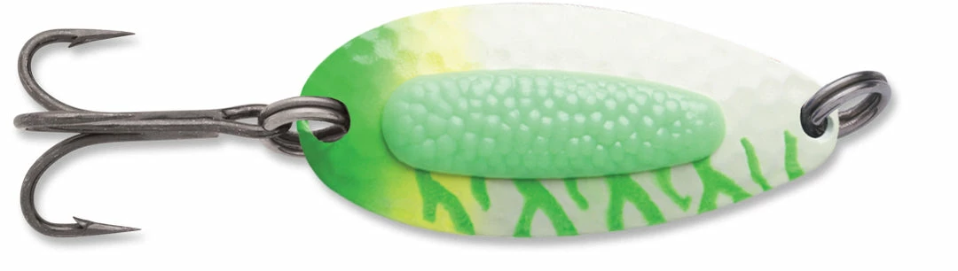 Blue Fox Pixee Spoon features heavy-duty construction that allows long casts and deep retrieves even in fast moving water. It really lures ’em in with a dazzaling sparkle of flashes emitted from the hammered spoon. A plastic insert designed to add a natural touch by imitating a cluster of fish eggs. Rigged with extremely sharp VMC black nickel treble hooks for excellent penetration and flawless hooksets. Includes a properly sized siwash hook as well. Available in a wide range of colors, you can choose from UV, nickel plated, gold plated, painted and metallic finishes.