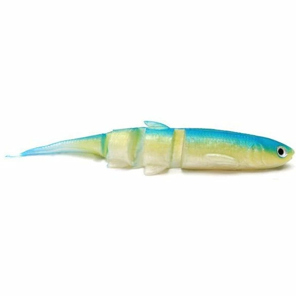 The Castaic Super Jerky J soft jerk bait was created with an incredible three segmented body. It has hand painted eyes and a multi-colored paint job. These incredible jerk baits jump, dart and splash at the surface like no other. Molded soft plastic with a textured scale pattern for a bass appealing feel, these jerk baits swoop and glide beautifully with or without any weight added. The difference is how the Castaic Super Jerky J is designed with a thick mid-section and thin tail section that causes the bait to veer wildly from side to side when twitched along.