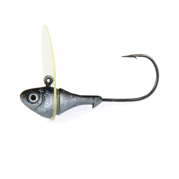 - The Fish Head Dude Jighead is an innovative swimbait jig head with a vertically mounted fluorocarbon urethane blade.