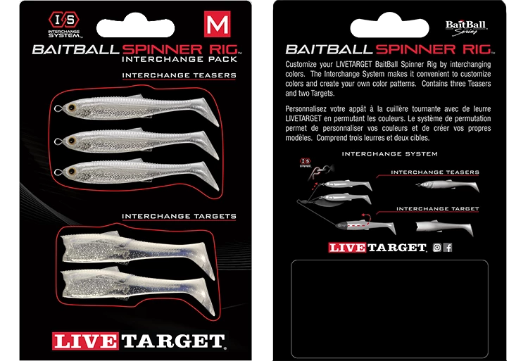 - The LIVETARGET BaitBall SR Interchange Pack Umbrella Rig Parts are specifically designed for the BaitBall Spinner Rig to serve as replacement fish.