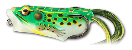 Fishing League Worldwide Tour Pro Scott Martin designed the LIVETARGET Popper Frog Hollow Body Frog as part of the LIVETARGET Signature Series to create a lure that takes advantage of both modern technology and natural predatory response for the perfect strike-inducing topwater frog. A perfect anatomical model with a cupped mouth that chugs water outrageously, the Popper Frog gives the topwater commotion you want. It allows a greater hookup ratio with its custom razor-sharp hook designed for solid hook setting performance. It also mocks the real thing with folded legs, which also provide better aerodynamics for vertical landing and long-distance casting. Available in 10 colors and 2 sizes, the LIVETARGET Popper Frog Hollow Body Swimbait is perfect for shallow water applications with even the thickest of vegetation!