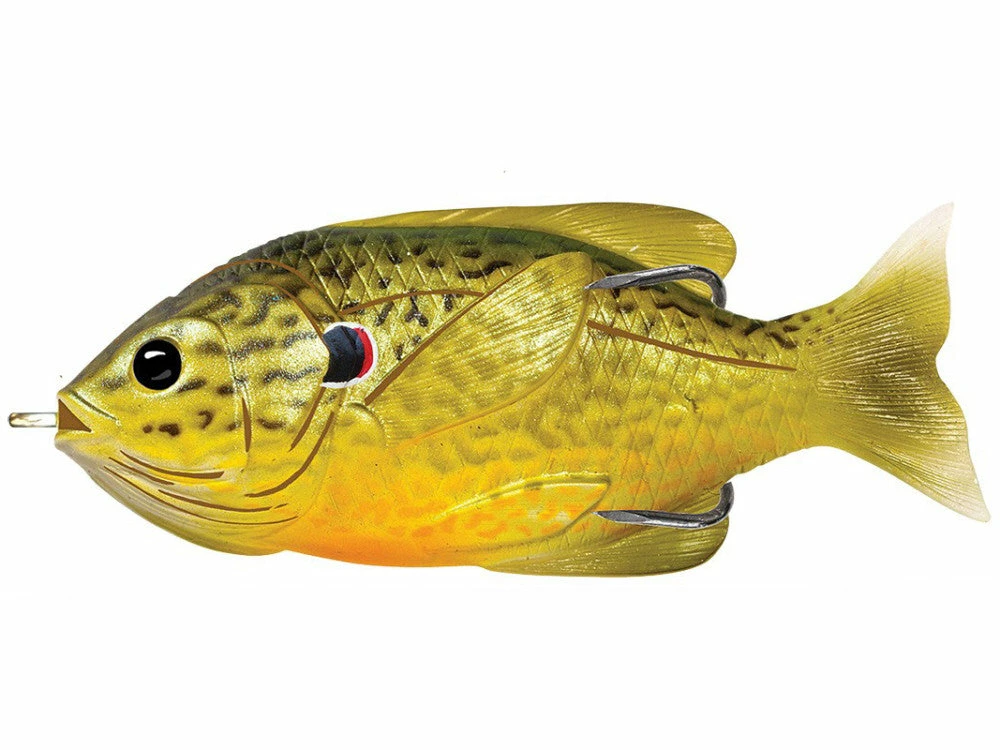 The LIVETARGET Sunfish Hollow Body replicates a juvenile sunfish pushed to the surface by predatory fish. The Hollow Body Sunfish is ideal for Largemouth Bass and Northern Pike. The custom Trokar double hook provides high hook up ratios and the weedless design makes it ideal for thick cover. You can walk the LIVETARGET Sunfish slow with a 180° swing, or walk it fast to create a bubble trail.