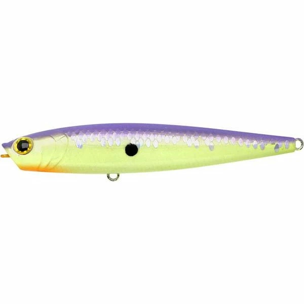 The Lucky Craft Gunfish is the latest of an extensive series of next generation topwater baits. It features a slim tapered body design and uniquely shaped-cupped mouth. The configuration of the mouth makes the bait splash and pop like no other. The Lucky Craft Gunfish glides across the waters surface with a tight “walk the dog” action similar to the Sammy series. The distinct difference with the Lucky Craft Gunfish is the incredible fluid motion of the bait on retrieve. This topwater will allow you to catch bass even under highly pressured situations. The resin/tungsten composite weighting system of the Gunfish95 will allow you to cast it a mile, and approach these fish from vantage points inaccessible with conventional topwater baits. This will effectively catch those finicky bass without alerting them to your location.