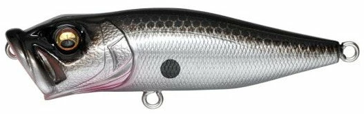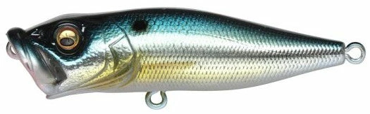 Introduced in 1996, the  MEGABASS POP-X breathed new life into the old-style popper concept, adding a gill-system and an attention to detail that immediately set this lure apart. While the carefully crafted contours and hand-finished paint job might draw your eyes first, the real magic lies within the Megabass original Side-Stepping Balancer (PAT.) system. This patented technology features a fixed tungsten weight at the tail, and a spherical tungsten balancer towards the front that moves from side to side. This channels the weight’s movement laterally, combining the spitting action of a popper with a truly unique rolling-dog-walk action. Of course, the POP-X can be worked like a regular popper, but unlike a conventional popper—which only splashes—the patented gill system of the POP-X has two slits that allow for water to pass through, creating a more organic surface disturbance. In addition, the mouth of the POP-X is designed to maximize the spitting distance that can be achieved with each twitch, resulting in considerable water-displacement.