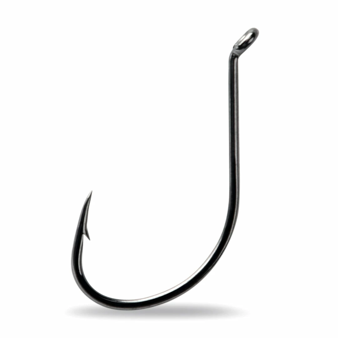 Fishing the drop shot rig is an effective way to present your soft plastic lure close to the bottom, without snagging. The fine wire hook offers a delicate presentation of your lure. Fish it with a suspended presentation with a steady motion, or let it bounce off the bottom, leaving as many spin stops you like. Your soft plastic lure will be right in the striking zone. The best knot for tying the hook to the line is the Palomar knot, which will place it at a 90-degree angle from the line. Use it to target bass, perch or trout in rivers, lakes or canals. Chemically sharpened, Nor-Tempered high carbon steel. Available in Black and Red finishes in sizes 2, 4, and 6.