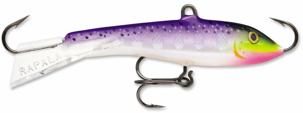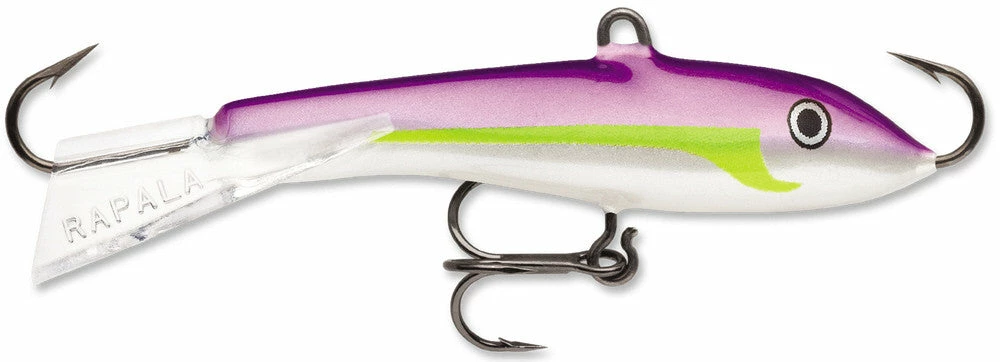Swimming in tantalizing circles under the ice or in open water for suspended game fish, the Rapala Jigging Rap features a balanced, weighted minnow profile. Single reversed hooks with center treble and eyelet, this bait can also be bottom bounced, yo-yo style off the bottom with unbeatable results. Wide range of sizes is complimented with natural and glow color patterns.