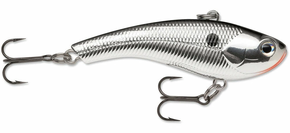 Fish the Rapala Slab Rap with quick rod snaps. The Slab Rap searches in wide, erratic directions, circling back to center after pause. Lift-drop motion creates subtle vibration on rise, followed by evasive side-to-side motion on the fall. Weight forward design enables a rocking action for triggering negative fish.
