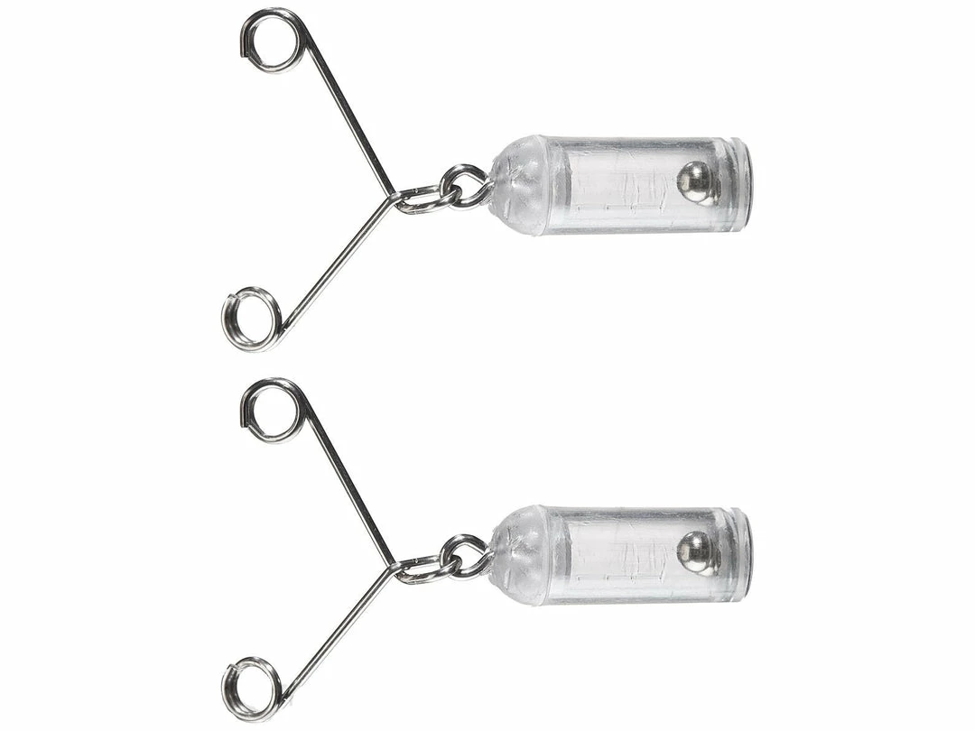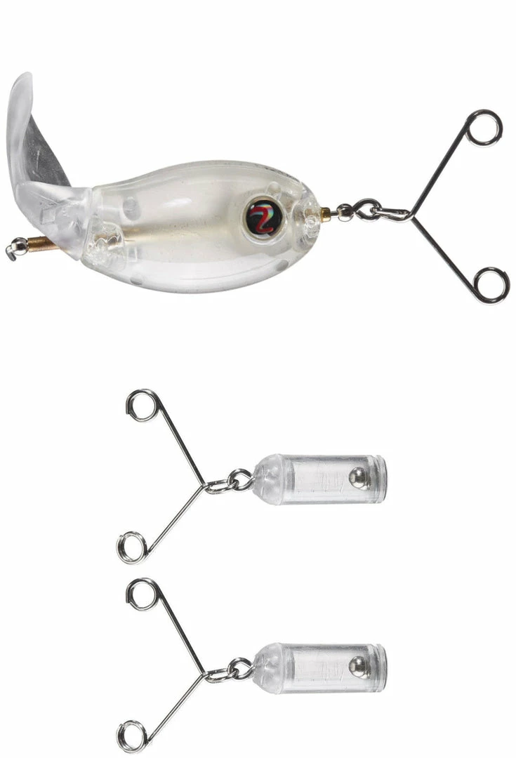 The rattles have a Y-shaped piece of wire on the nose with eylets on the ends so you can easily install by running each hook point through the eyelets. Once installed, the rattles provide the extra commotion you need to attract fish when fishing choppy open water or heavy, matted cover.