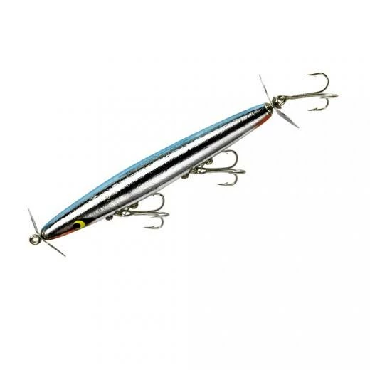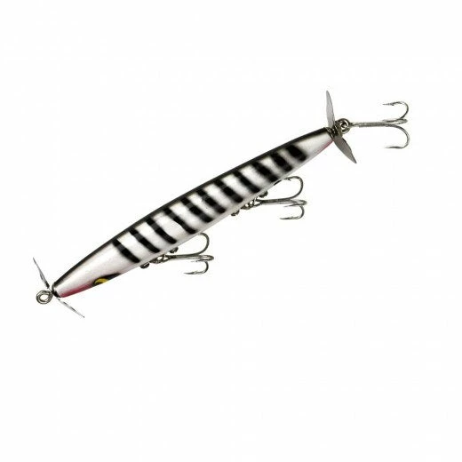 The Smithwick Devil’s Horse Twin Prop Topwater Lure is a 4 1/2 inch thin body twin prop topwater lure. It is a classic handcrafted wooden bass fishing lure. The propellers at the front and tail of the lure can be adjusted to throw more water and work slower, or bent back for a quicker, quieter retrieve. Thanks to the props creates action without moving forward far, so you can work a fish a long time and simply tease it into striking. Available in 8 colors.