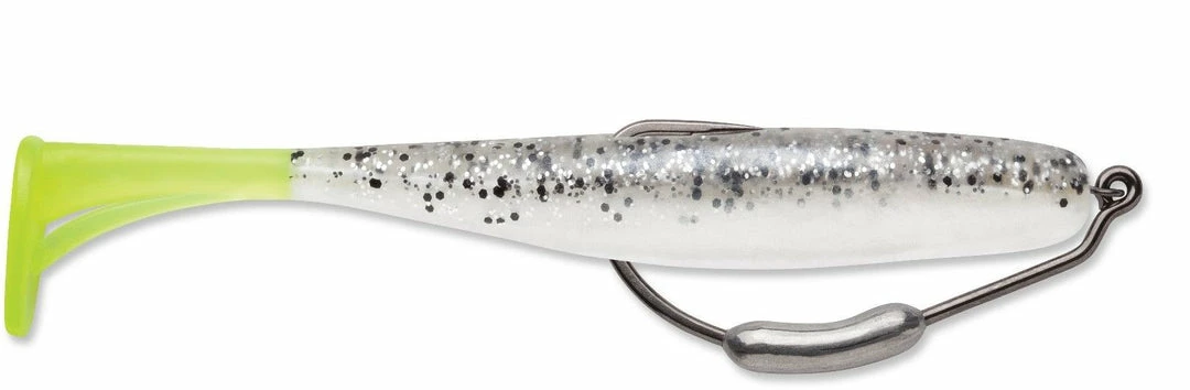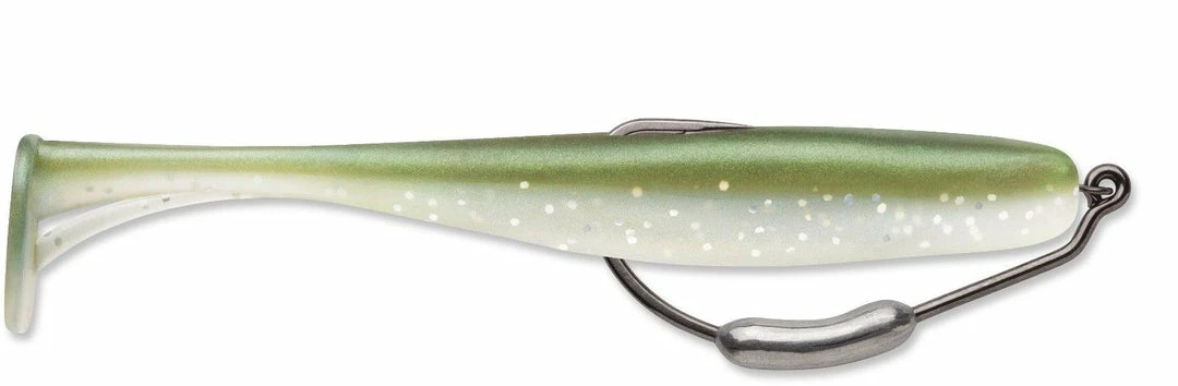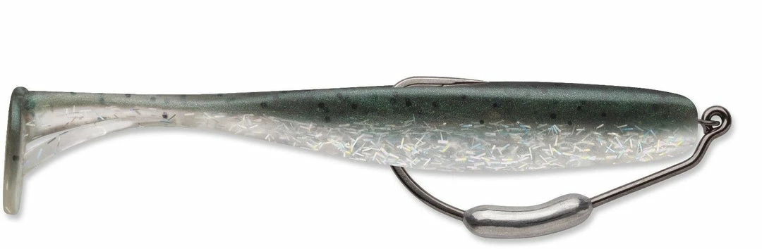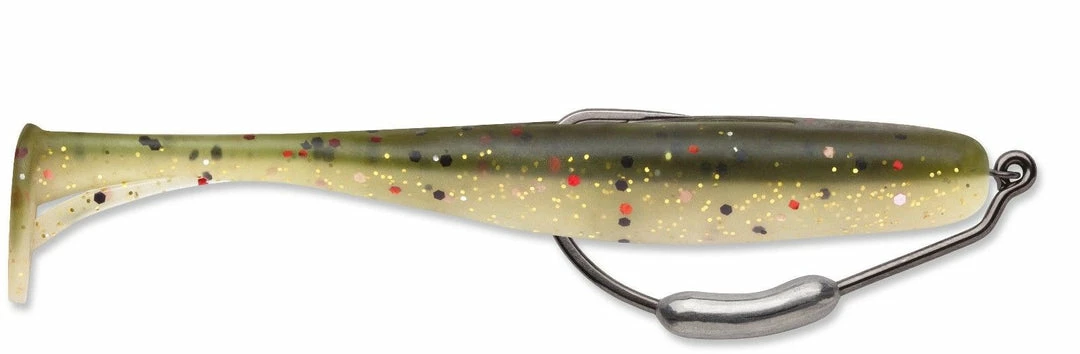 The Storm 360GT Mangrove Minnow w/ Hook is a pre-rigged soft plastic swimbait designed to imitate mangrove minnows for inshore fishing. It’s molded to have a irresistible swimming movement on retrieve and fall with a tight body roll and quick paddling cadence. In addition, the tail offers the option to cut or remove the “tail tendon” for a wider tail action. Also features belly and back slots for easy rigging and maximum hook gap and a pre-rigged VMC Coastal Black Hook with Keel Weight. Available in 2 sizes (3 inch and 4 inch) and 18 colors suitable for fresh-, brackish, or saltwater applications. Each pack comes with one body pre-rigged with hook and 3 extra swimbait bodies (4 bodies and 1 hook total).