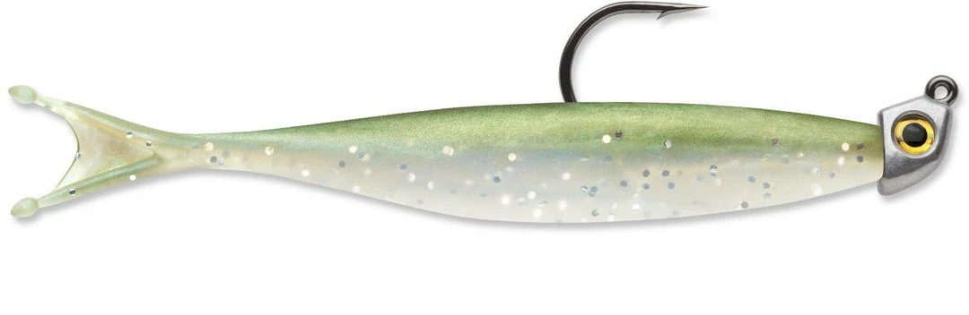 - The Storm Trick Tail Minnow w/ Jig is a 5 inch soft plastic swimbait pre-rigged with a 1/4 ounce jig head.