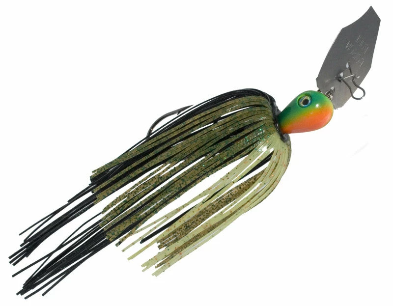 The Strike King Pure Poison extreme action swimming jig features the Perfect Skirt with Magic Tails. This lure has a unique head design, blade and harness that produce incredible action and vibration. The 3D eyes give a realistic appeal and the special split ring line tie is strong and secure.