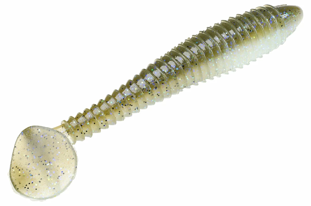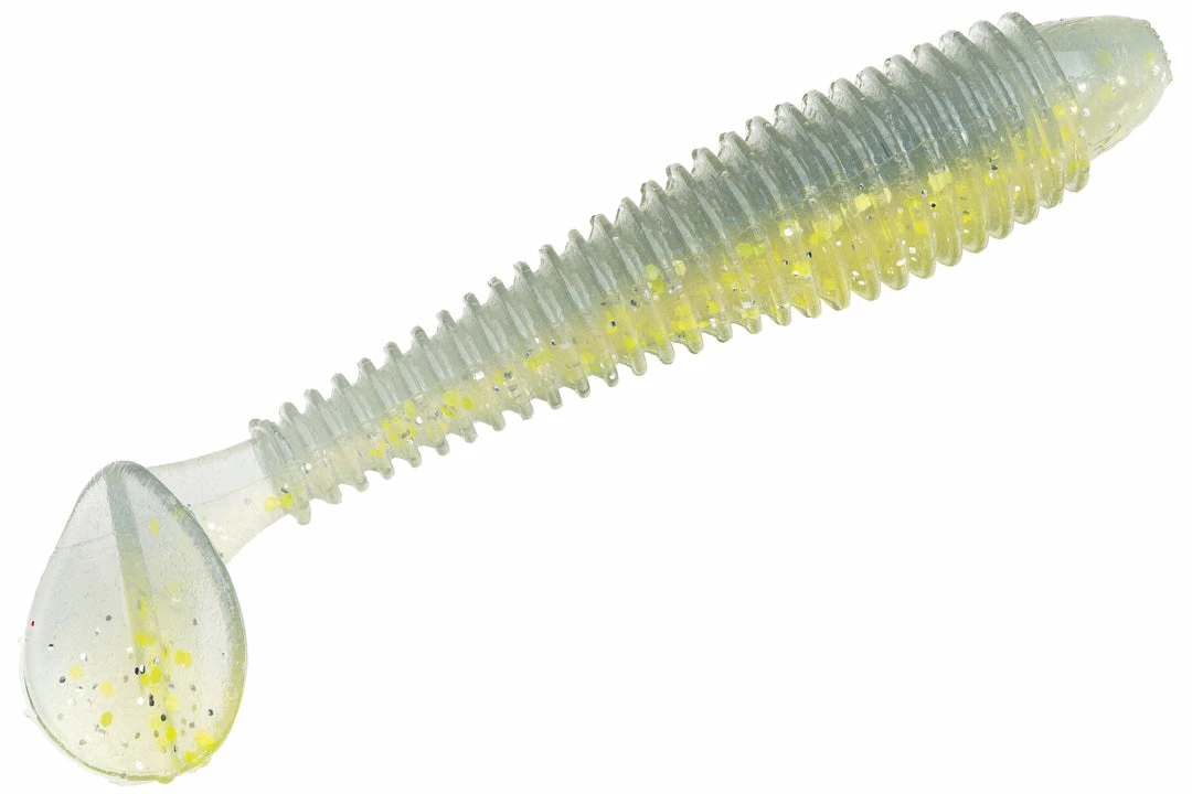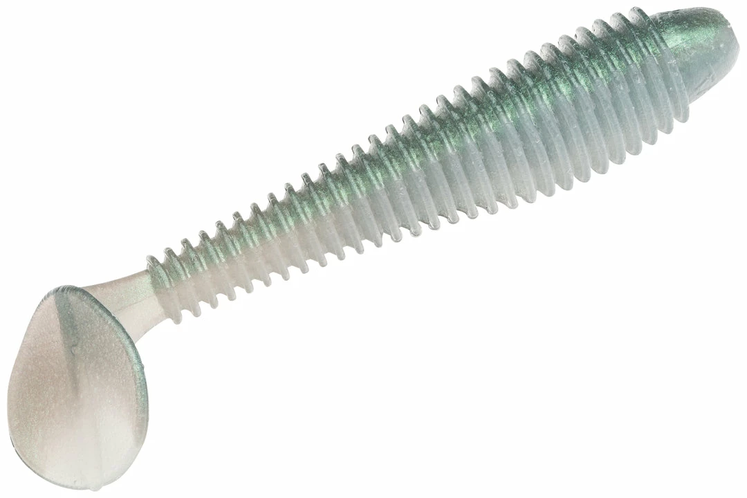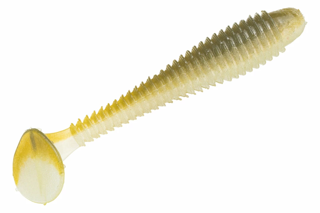 - Sleek nose cone and softly ribbed body to replicate natural baitfish contours and a pancake-like paddle tail to pump out vibrations.