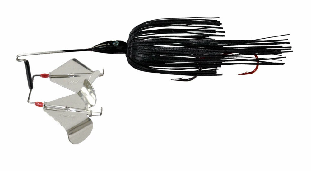 The Strike King The Double Take Buzzbaits have twin counter rotating blades that create extra lift, enable a slow retrieve and spray water outward for a commotion unlike any other buzzbait. They include the Strike King Perfect Skirt that blooms wide and even and Magic Tails that serve as a trailer to give more action than typical skirts.