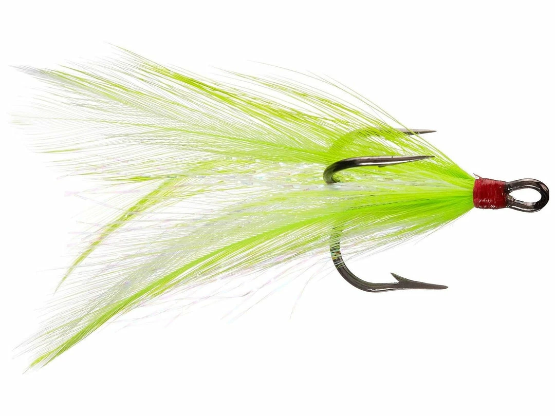 The Eagle Claw Lazer Sharp Dressed Treble Hook is a ultra-sharp treble hook dressed with premium feathers for added attraction and a more natural presentation. The strands are hand-tied to ensure strong performance season after season. Add it to poppers, jerkbaits, and crankbaits and watch the extra flare make your favorite lures even more desriable to fish. Available with either Chartreuse or White feathers in sizes 4 and 6.