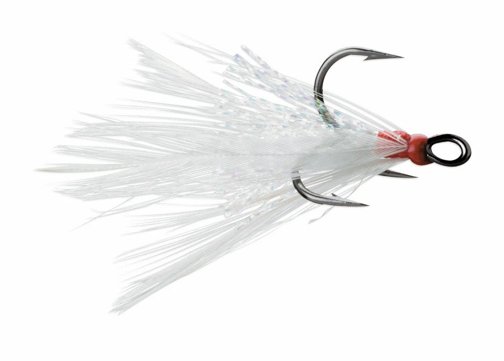 The VMC 8651DT Dressed X-RAP Treble Hook imitates the action of a minnow’s tail, triggering strikes. This VMC Round Bend premium treble is forged from the finest high-carbon steel. The Cone Cut point is a chemically sharpened, second to none, premium point offering extremely fast and effortless penetration power.