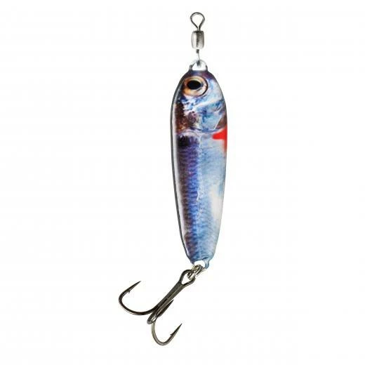 The War Eagle Jiggin’ Spoon is a jigging spoon. It is widely regarded as one of the best spoons on the market for taking deep bass in clear water, especially during the tough cold-weather season. Features high-quality construction, such as a swivel to prevent line twist, realistic finishes and a stout hook to handle violent thrashes from fish. Stamped from premium brass with a hammered finish, the Jiggin’ Spoon pumps out plenty of fish-attracting flash and vibration. Available in 6 colors and 2 weights.