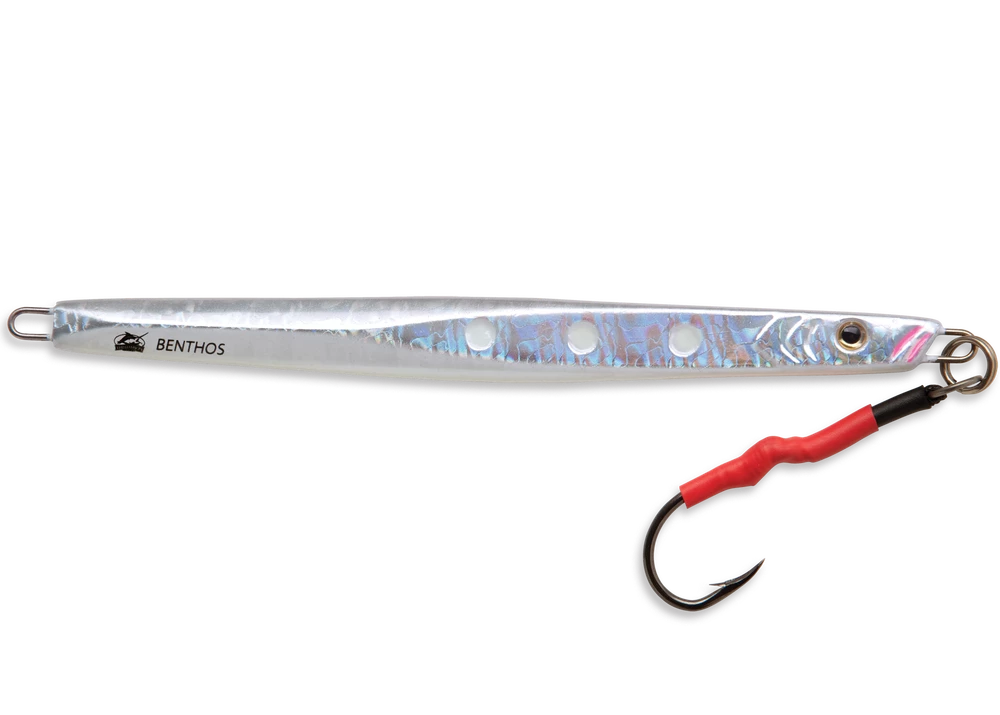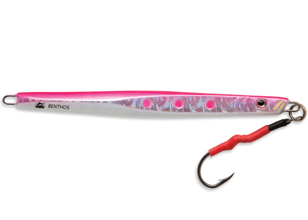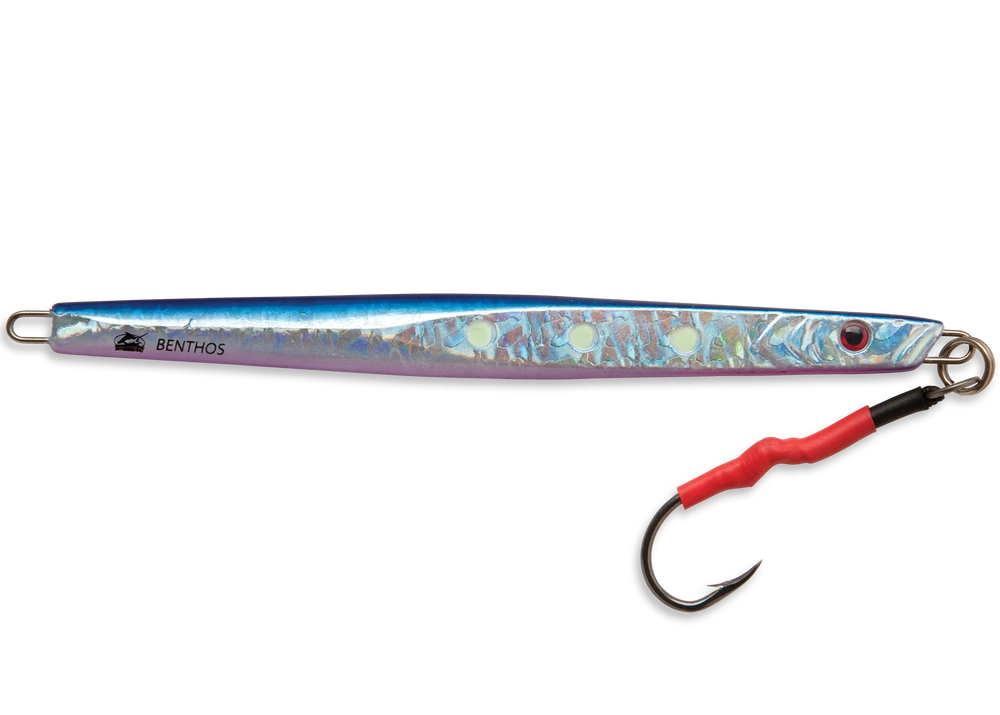 True to its name, the Williamson Benthos Speed Jig speedily catches the target predators, thanks to its specially designed diamond-shaped body to allow it for faster vertical dropping into the strike zone faster than ever before. Its unique tapered body helps anglers fish more easily by reducing the drag coefficient. Even ferocious fish attacks don’t put a dent in the jig’s durable Steel Core, giving it the dependable profile that makes it ready for any pelagic fishing adventure. To top it all off, the Special Super Fluoro Lumo Finish enthralls more fish to bite, only to be trapped with the pre-rigged VMC Assist Hook. The Williamson Benthos Speed Jig is available in 6 colors and 4 sizes.