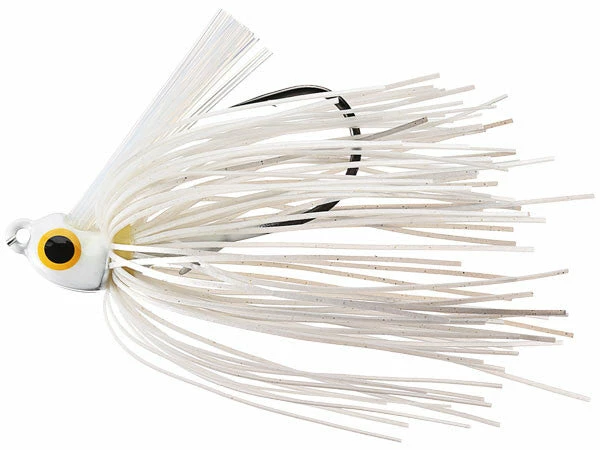 Z-Man Project Z Swim Jigs feature a unique planing surface and balanced design. They are extremely stable at all retrieve speeds and does not roll like other swim jigs. Prominent painted eyes, multi-step paint schemes, and vibrant 45-strand silicone skirts provide an attention getting look, and solid made-in-the USA construction and Mustad UltraPoint hooks ensure that you’ll land the big ones!
